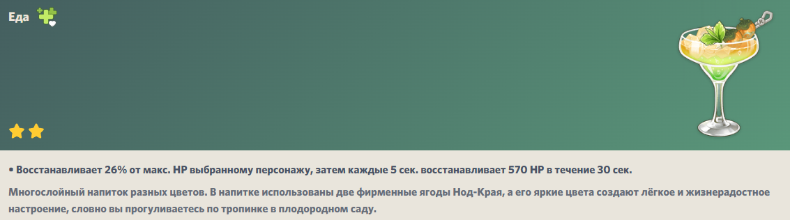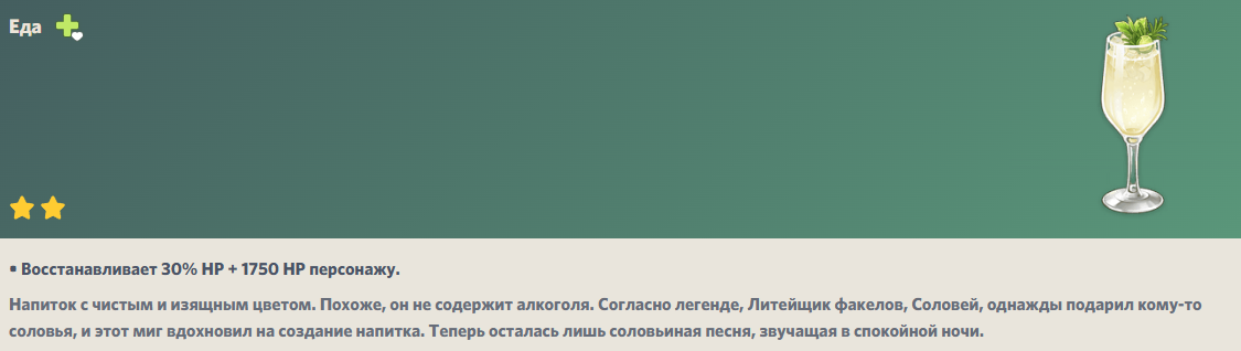 Эффект: восстанавливает 30% от максимального HP и дополнительно 1750 HP активному персонажу.