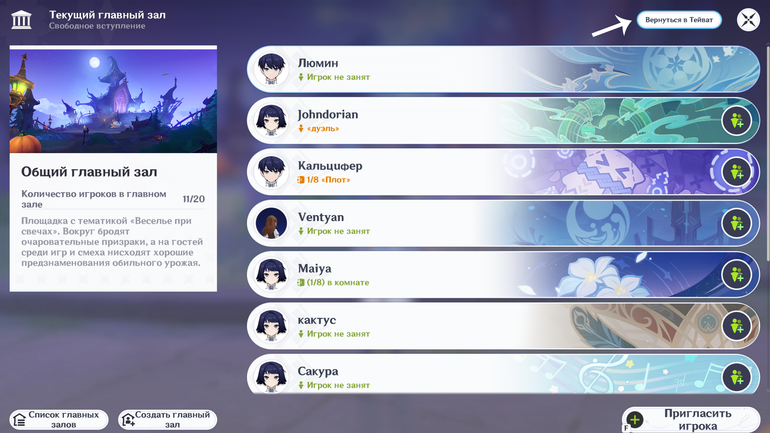 2. В появившемся окне выберите пункт «Вернуться в Тейват».