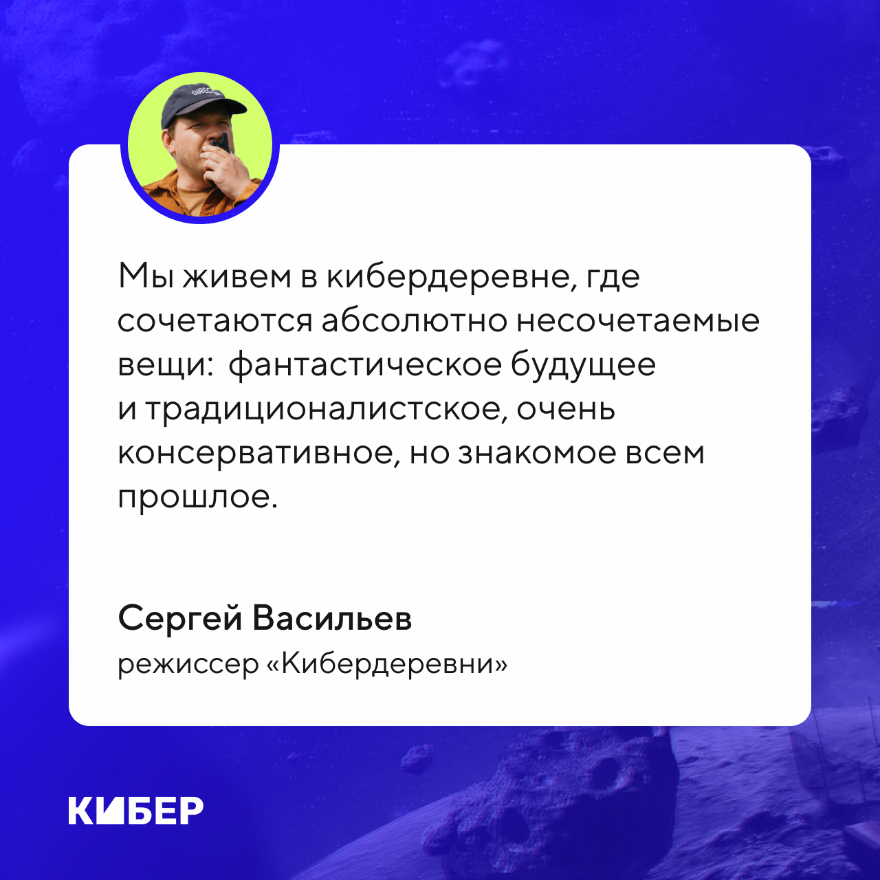 И мне кажется, это круто. Почему многие миры, которые показывают в фильмах, выглядят безжизненно? Потому что они очень однообразны. Это либо все очень футуристическое, либо все очень антиутопичное, грустное и мрачное. А реальность на самом деле очень пестрая, разная – одновременно и будущее, и о прошлое. И в «Кибердеревне», думаю, получилось это показать.