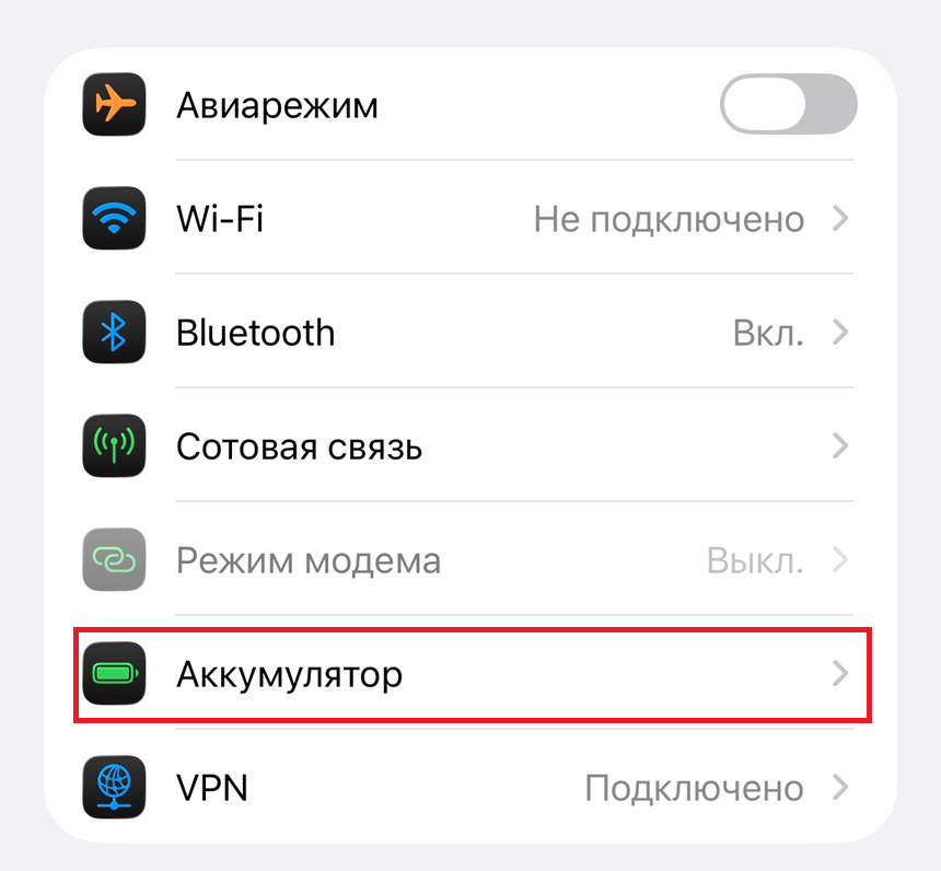 Откройте «Настройки» и перейдите в раздел «Аккумулятор».