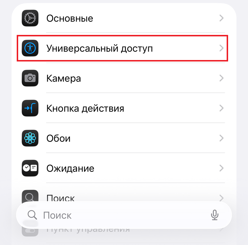 Перейдите в меню «Настройки» и откройте раздел «Универсальный доступ».