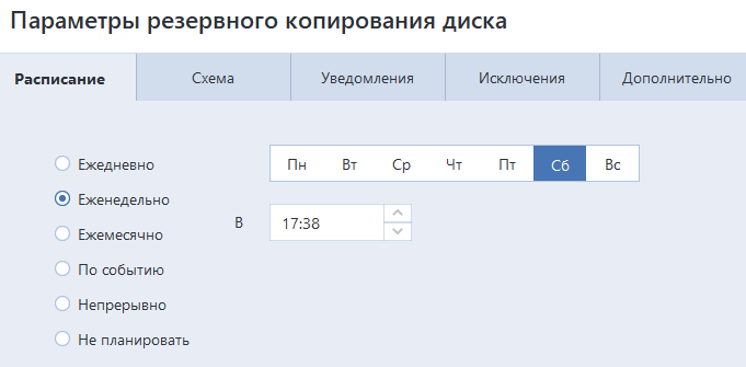 В программе также можно настроить расписание автоматического резервного копирования с выбором из нескольких схем. Например, при создании нового бэкапа старый будет автоматически удаляться или обновляться только новыми изменениями.