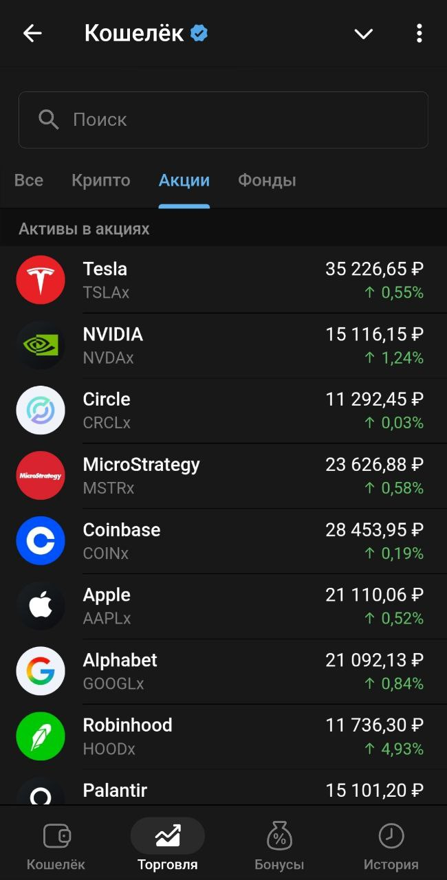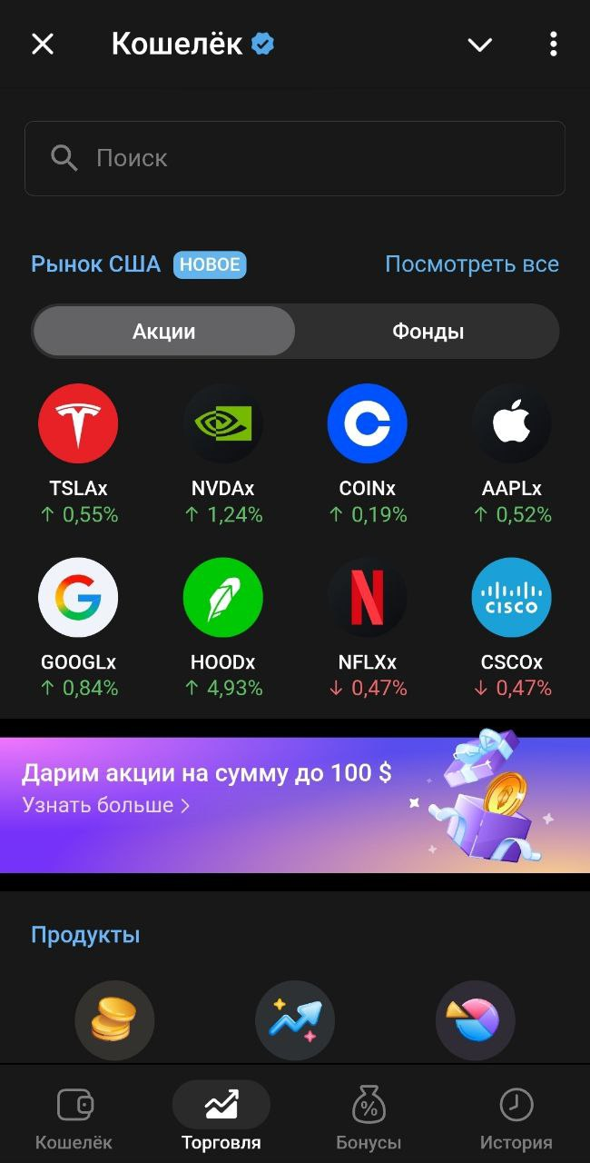 Встроенный кошелек серьезно упрощает вход на мировые финансовые рынки. Теперь, чтобы начать инвестировать в американские компании, не нужно открывать сложный брокерский счет и разбираться в специализированных программах. Всего несколько кликов – и часть глобального бизнеса уже в вашем мессенджере.