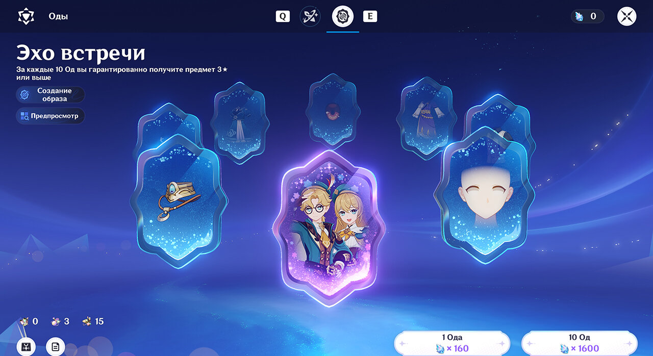 Для «бесплатных» F2P-игроков доступна лишь одна валюта – жеода воссоздания. Ее насыпают за задания вроде «сыграть 3 разных игры» или «разместить свой лук на витрине». И если в основной части «Геншина» за такие активности дают универсальные камни истока, то жеоды можно тратить только на стандартные крутки. Вот только пятизвездочных стандартных нарядов нет – максимум можно получить четырехзвездочный набор. И даже это тяжело.