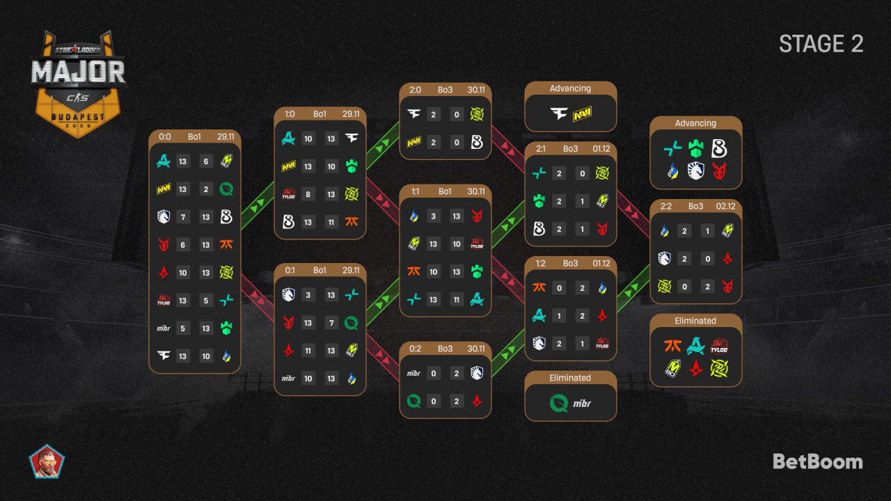 - Вторая стадия: Aurora, NAVI, Astralis, 3DMax, Liquid, MIBR, Passion UA, Tyloo.