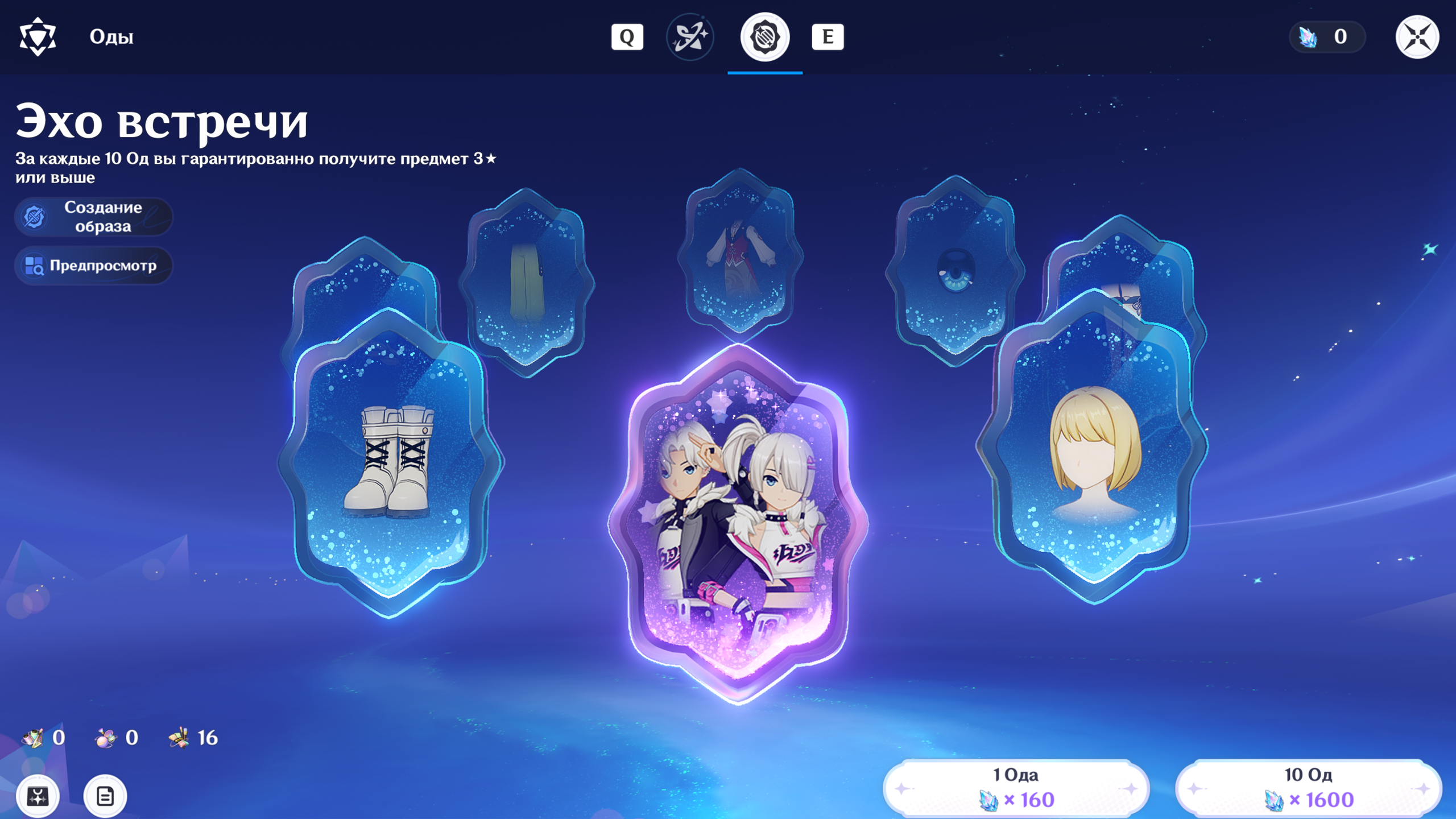 Доступна всегда. Здесь можно получить только редкие и элитные предметы (до 4★). Легендарные 5★ наряды в этот баннер не входят, зато дубли не пропадают зря и идут на улучшение образов или обмен.