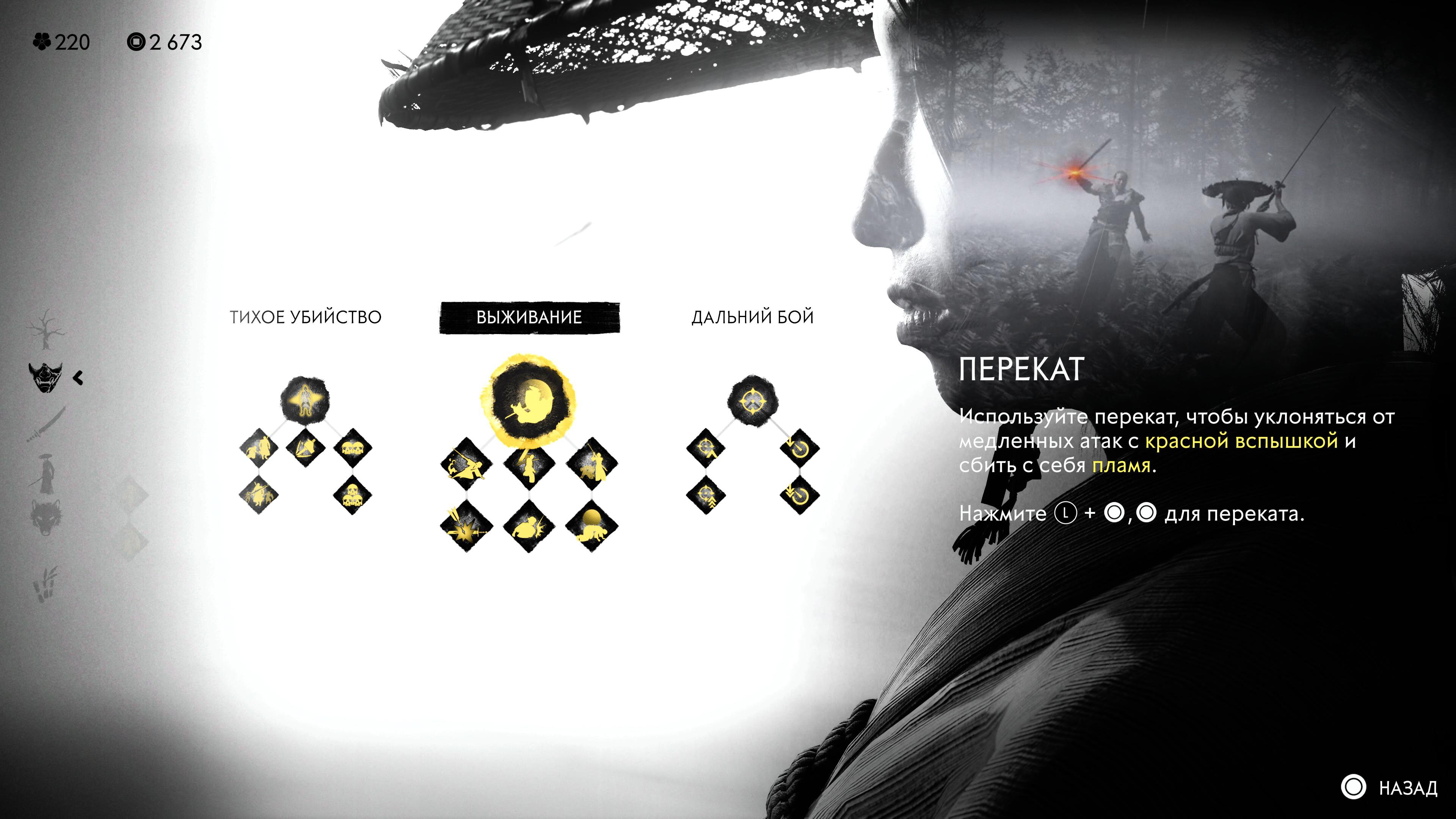В самом начале прохождения в Ghost of Yotei вам доступно ограниченное количество навыков для прокачки – часть ветвей откроется лишь по мере продвижения по сюжету. Однако уже доступных умений вполне достаточно, чтобы справиться с главной проблемой старта – боями против нескольких противников одновременно.