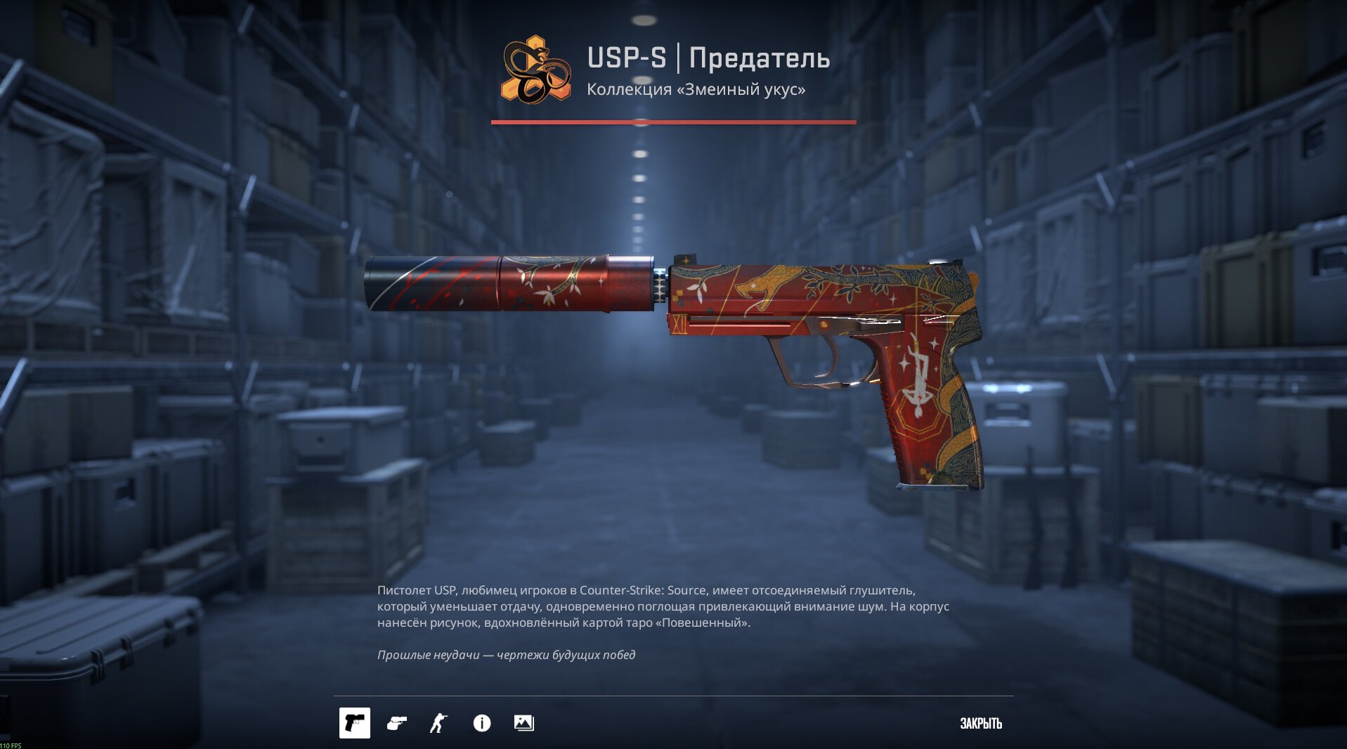 Этот красивый скин может стать как верным соратником в катках, так и хорошим материалом для контракта обмена. По цене он отличается от USP-S всего на несколько рублей.