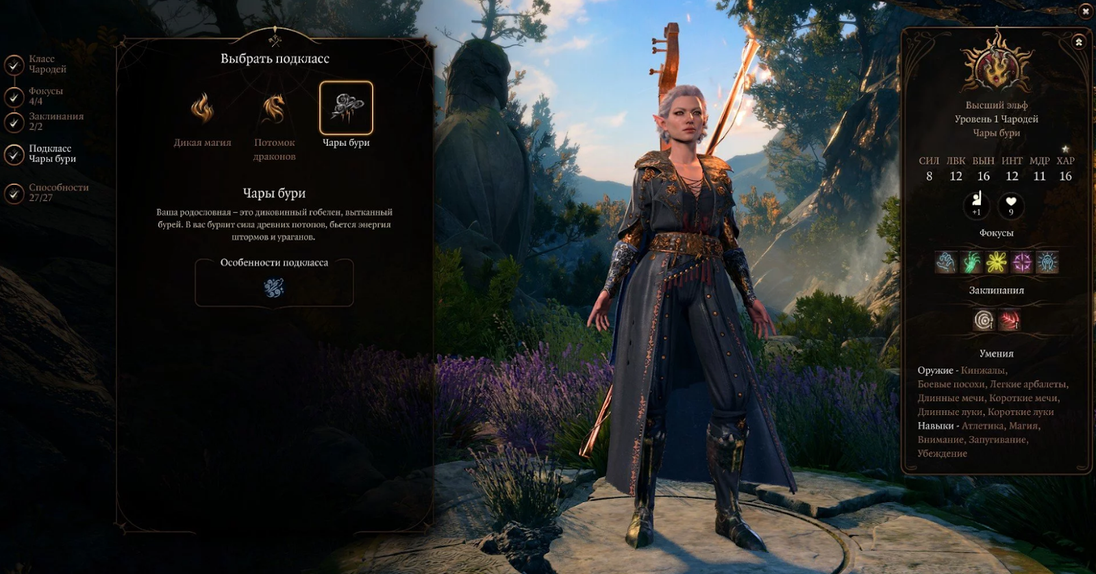 Среди подклассов лучшим считается «Чары Бури», который фокусируется на молнии и громе, предлагая мобильность и постоянный урон по площади. После заклинаний первого круга или выше вы можете летать, не провоцируя атаки, что идеально для маневров.