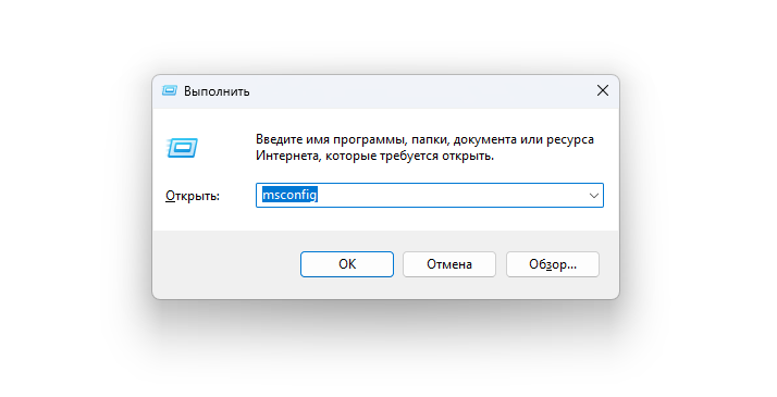 Нажмите клавиши Win + R на клавиатуре или нажмите правой кнопкой мыши по кнопке «Пуск» и выберите пункт «Выполнить». Введите msconfig и нажмите Enter.