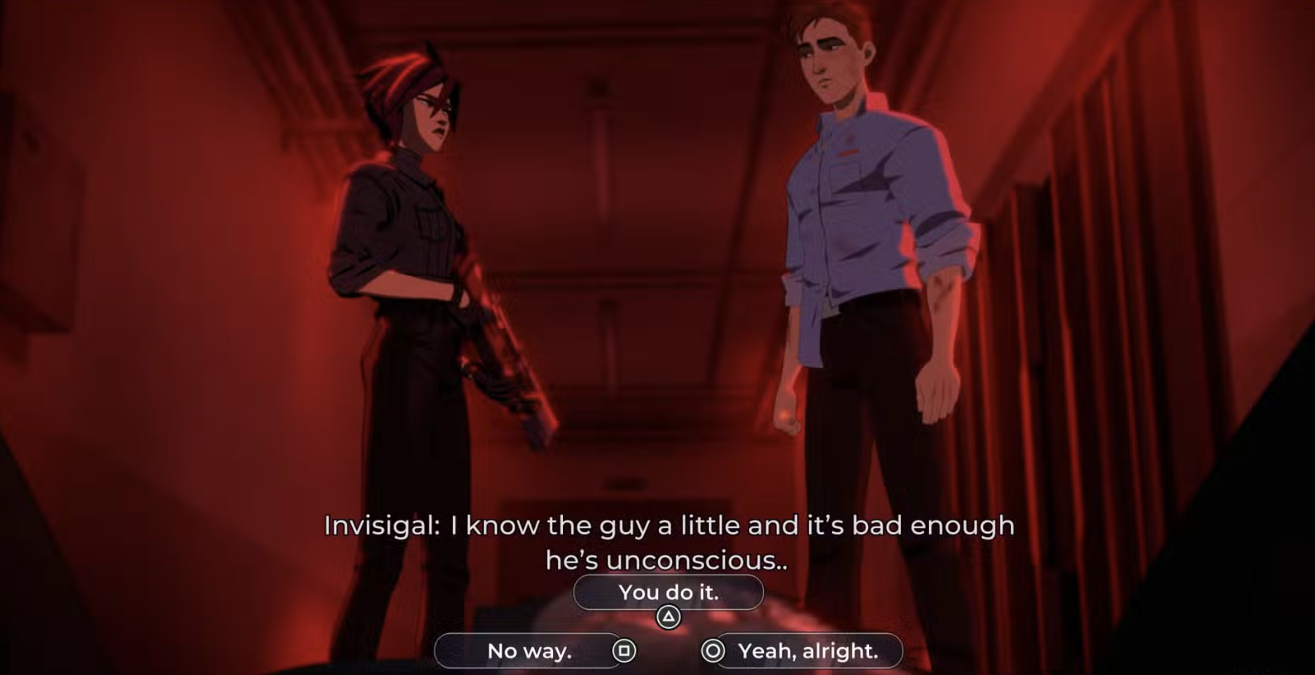 Защита Невидивы снизит боевой дух команды. На следующих сменах все, кроме Голема, будут подавлены – вылечить героев не получится, а выполнять задачи будет сложнее. Зато такое решение добавит истории больше эмоциональной глубины и новые ветки событий.
