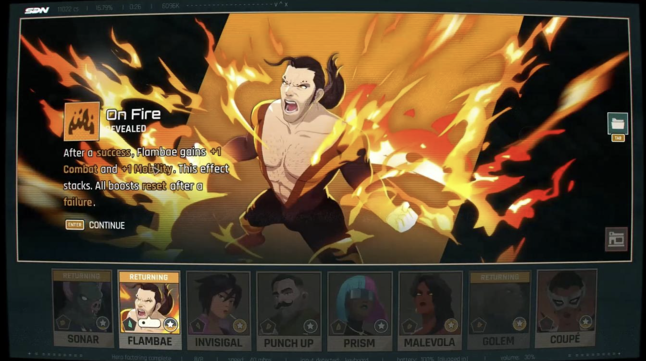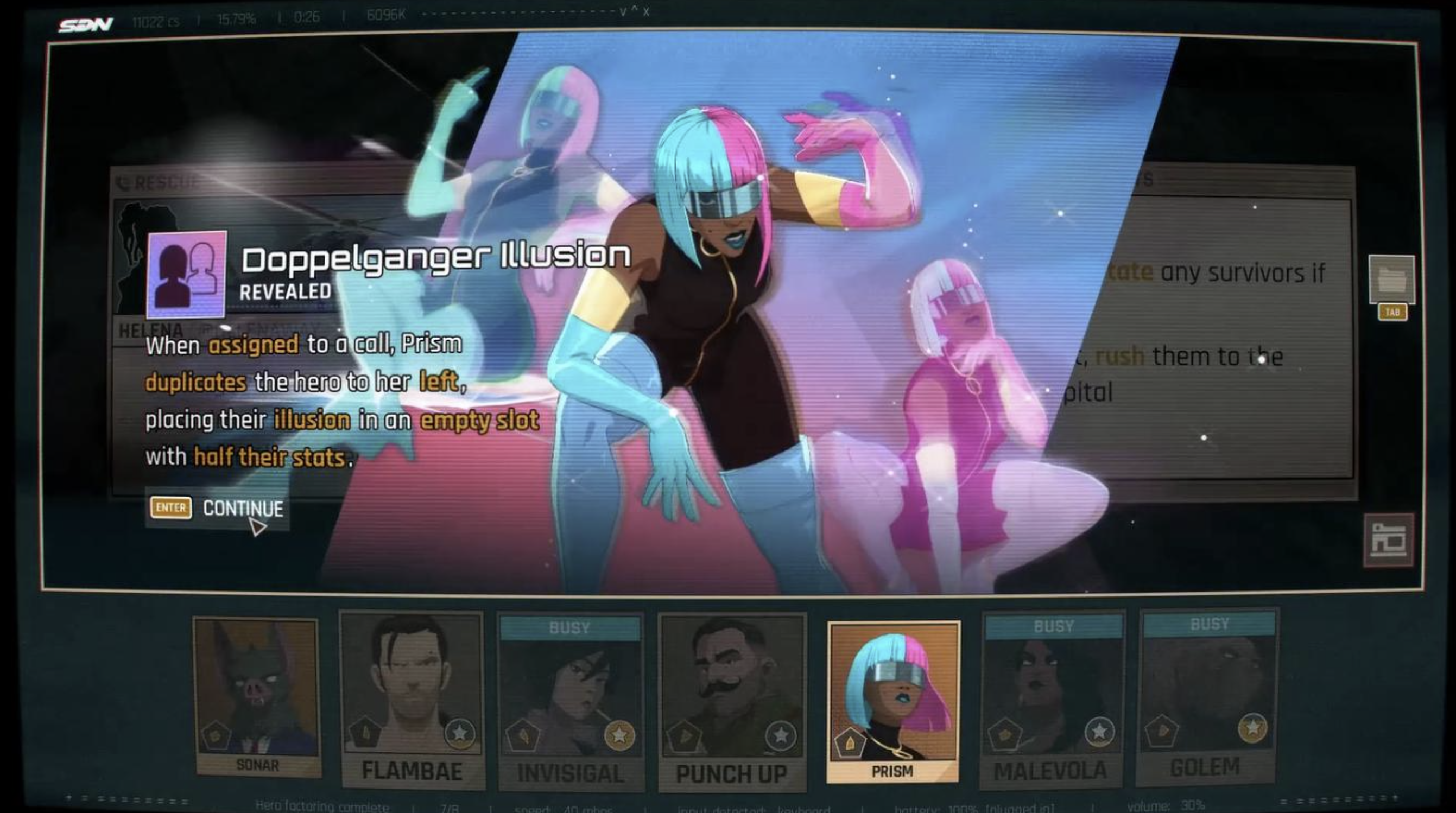 Затем в комнату войдет Блонд Блейзер и спросит, кто должен пополнить команду вместо выбывшего: Водобой или Феномамен. Выбор за вами – персонаж останется в команде до конца. В конце смены вы пообщаетесь с новичком о тревогах, но глобально это ни к чему не приведет.