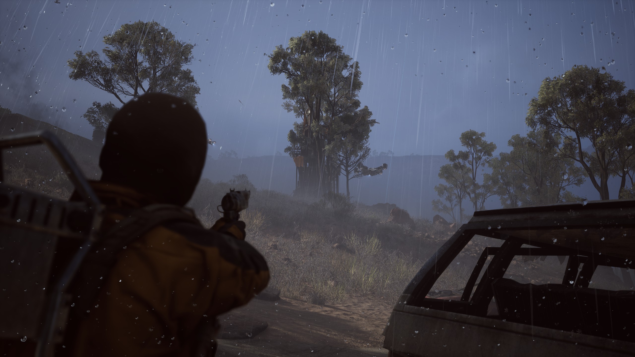 Чувство опасности от пребывания на поверхности создают вездесущие и весьма разнообразные роботы: от мелких разведывательных дронов до гигантских шагоходов-убийц. В соцсетях уже полно жалоб от не особо разбирающихся в жанре игроков, мол, «искусственные враги мешают мне играть и набивать фраги».