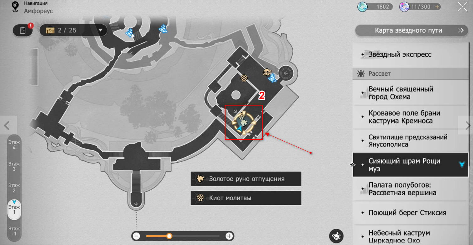Чтобы обнаружить первую, отправляйтесь на 2 этаж, ориентируясь на якорь «Зал золотой ветви». После телепортации сверните влево, затем поднимитесь по лестнице. Вам нужно будет отыскать укромную нишу – она находится поблизости от неигрового персонажа и нимфы.