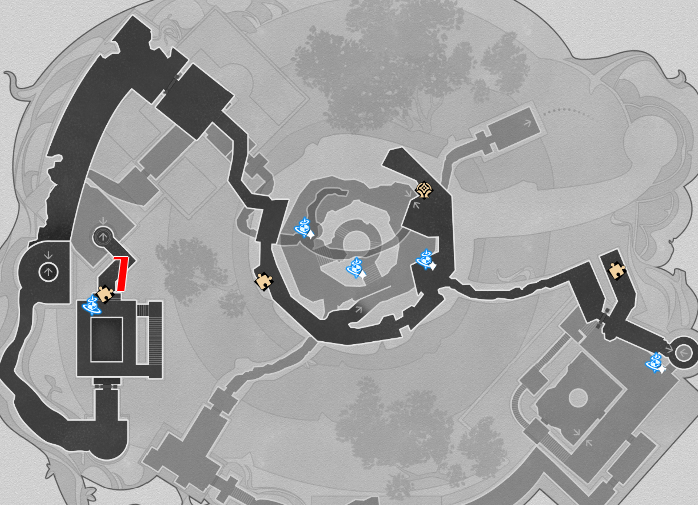 Чтобы обнаружить четвертую скрытую загадку, необходимо отправиться на нижний ярус якоря «Руины слез». Однако, прежде чем продолжить поиски, потребуется избавиться от воды. Для этого преобразуйтесь в Бартолоса возле портала, который находится неподалеку от якоря. Затем подлетите к сливной трубе, расположенной напротив, и с помощью атаки перекройте водный поток. Как только уровень жидкости снизится, проникните в проход, который откроется за статуей. Оказавшись в коридоре, сверните вправо и перекройте вторую трубу. Подойдите к якорю, затем спуститесь по ступеням лестницы. Пройдите через коридор, огибая зал, и, не доходя до запертых ворот, поверните направо – там вы обнаружите укромный уголок с загадкой.