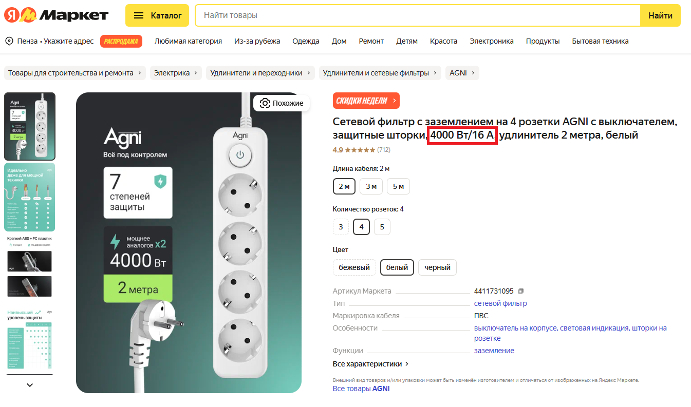 Характеристики сетевых фильтров и удлинителей