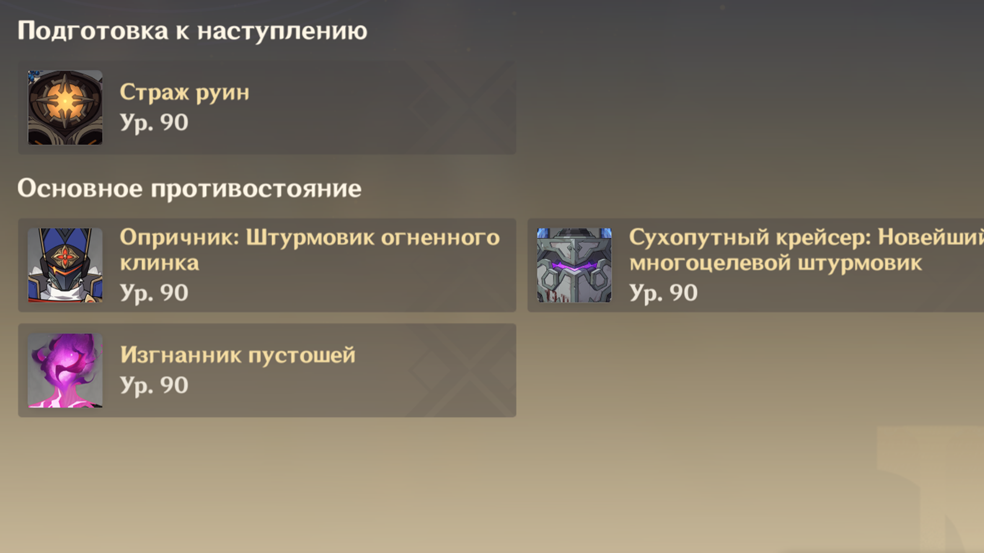 Серия боевых уровней, состоящих из двух этапов: Подготовка к наступлению и Основное противостояние. На первом этапе нужно выполнять определенные условия для повышения уровня усиления. На втором придется побеждать врагов с полученными баффами.