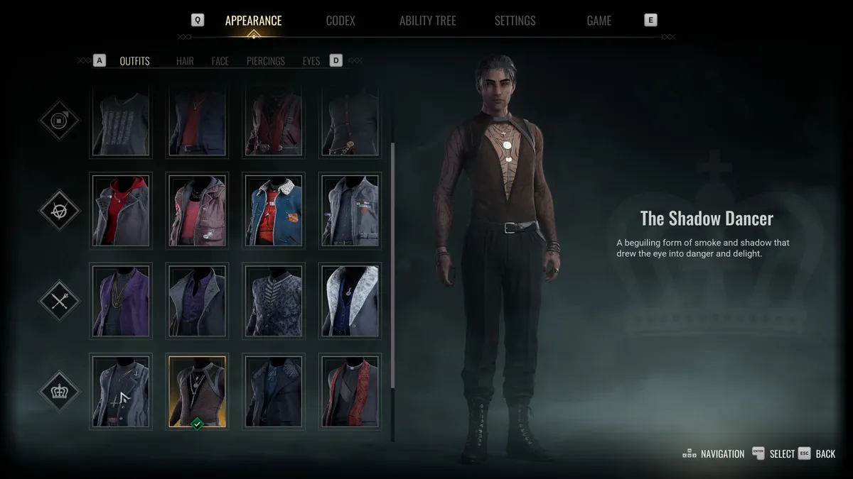 Танцующий в тенях (The Shadow Dancer) – разблокируется после умения «Прогулка по теням» (Shadow Step). Изящный костюм, будто сотканный из самой тьмы. Его обладатель движется бесшумно и невидимо, как шепот в пустом храме.