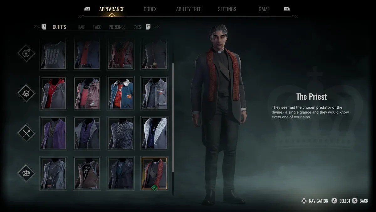 Священник (The Priest) – становится доступен при освоении способности «Вход в небытие» (Enter Oblivion). Наряд священнослужителя, парадоксально сочетающий благочестие и смерть. В нем вы вызываете трепет и отвращение одновременно.