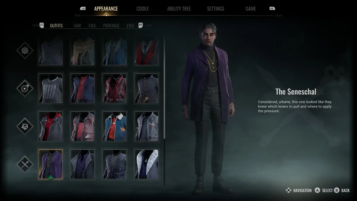 Сенешаль (The Seneschal) – открывается при освоении умения «Абсолютная власть» (Terminal Decree). Наряд высокопоставленного советника – сдержанный, но изысканный. В нем ваш персонаж выглядит как стратег и дипломат.