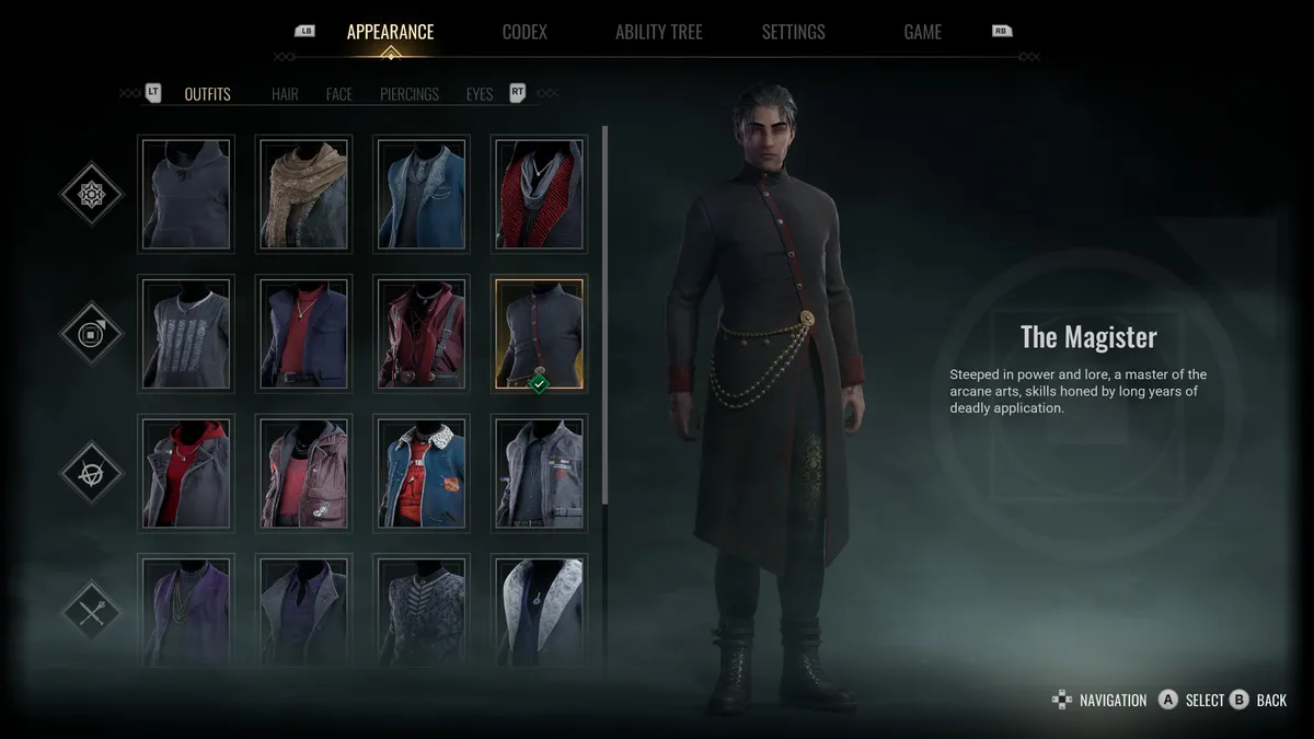 Магистр (The Magister) – становится доступен при изучении умения «Кровавый залп» (Blood Salvo). Этот аутфит подчеркивает статус ученого и боевого мага, владеющего разрушительными ритуалами.