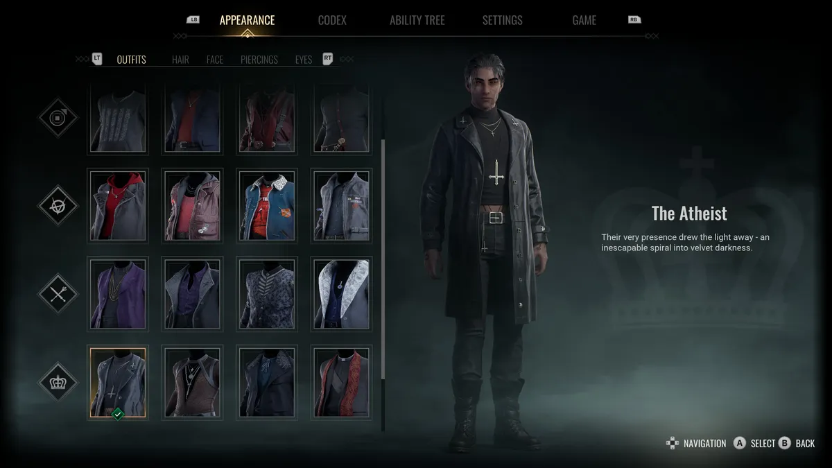 Атеист (The Atheist) – открывается после способности «Руки Аримана» (Arms of Ahriman). Темный аутфит, символизирующий отказ от света и веры. Простая, но пугающе холодная одежда.