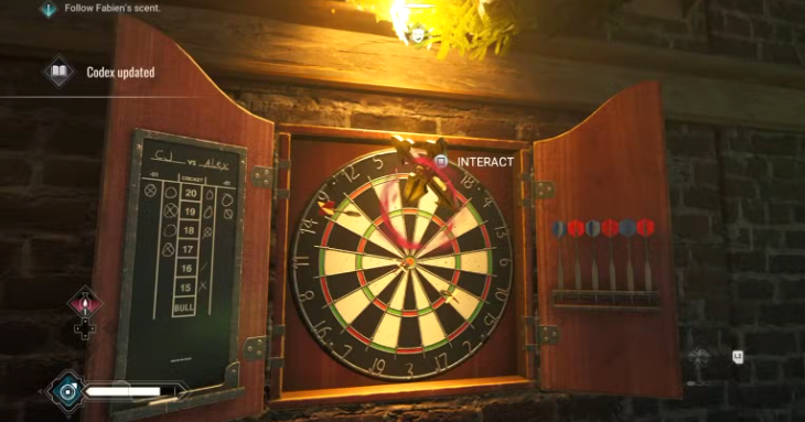 После этой миссии вы можете посещать бар практически в любой момент игры. Здесь вы найдете второй в Bloodlines 2 крест, торчащий из доски по дартсу.
