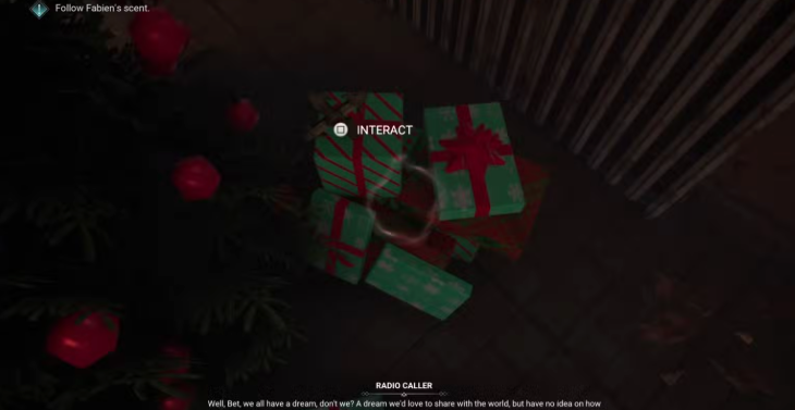 Если вы решите спуститься по лестнице, то на втором этаже жилого дома вы увидите рождественскую елку с подарками. Первый из крестов можно найти среди подарков.