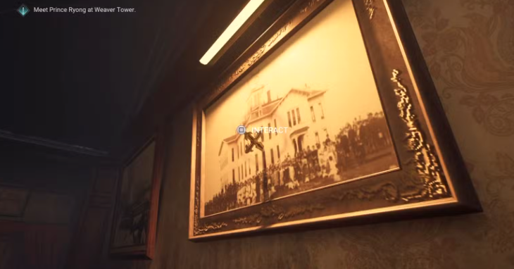 Как только вы получите доступ к пентхаусу, поднимитесь по лестнице и пройдите по балкону до места, где на стене висит картина со старым зданием. Вы увидите крест, торчащий из картины.