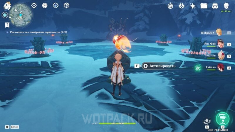 Чтобы запустить квест и понять, как проходить первую часть, направляйтесь к подножию Драконьего хребта. Возле входа расположилась искательница приключений Юй Ся. После короткого разговора она отправит вас изучать странный замерзший лед, который не реагирует на обычный Пиро урон.