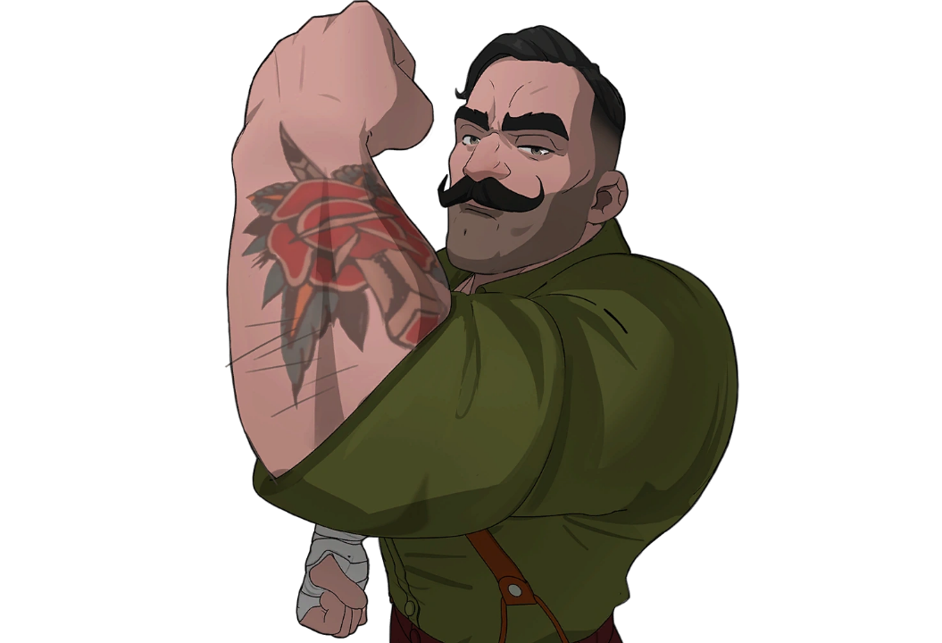 Голем – гигантское глиняное создание, оживленное магией, бывший разрушитель, теперь в «Феникс» . Молчалив и простодушен, он плохо справляется с головоломками, но великолепен в бою: выдерживает урон, формирует оружие и ловушки. Его арка – обучение эмоциям и связи, символизирующий спасение потерянных душ. Голем – мост между силой и уязвимостью.