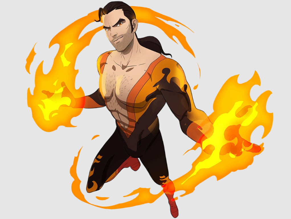 Фламбе – яркий экс-злодей, побежденный Меха-Мэном, но теперь герой в Dispatch. Высокий спортсмен с темно-коричневыми волосами в хвосте, он потерял кольцо и мизинец на правой руке. Его черный облегающий костюм с огненными узорами подчеркивает пироманскую натуру. Контроль огня – его козырь для атак и защиты, особенно в экстремальных условиях. Гордый и вспыльчивый, Фламбе сжигает стресс в пламени, но заботится о товарищах, включая Роберта. Миссии помогают ему обуздать ярость, превращая ее в страсть. Этот огненный персонаж символизирует борьбу страстей, освещая путь к настоящим связям в хаосе ЛА.