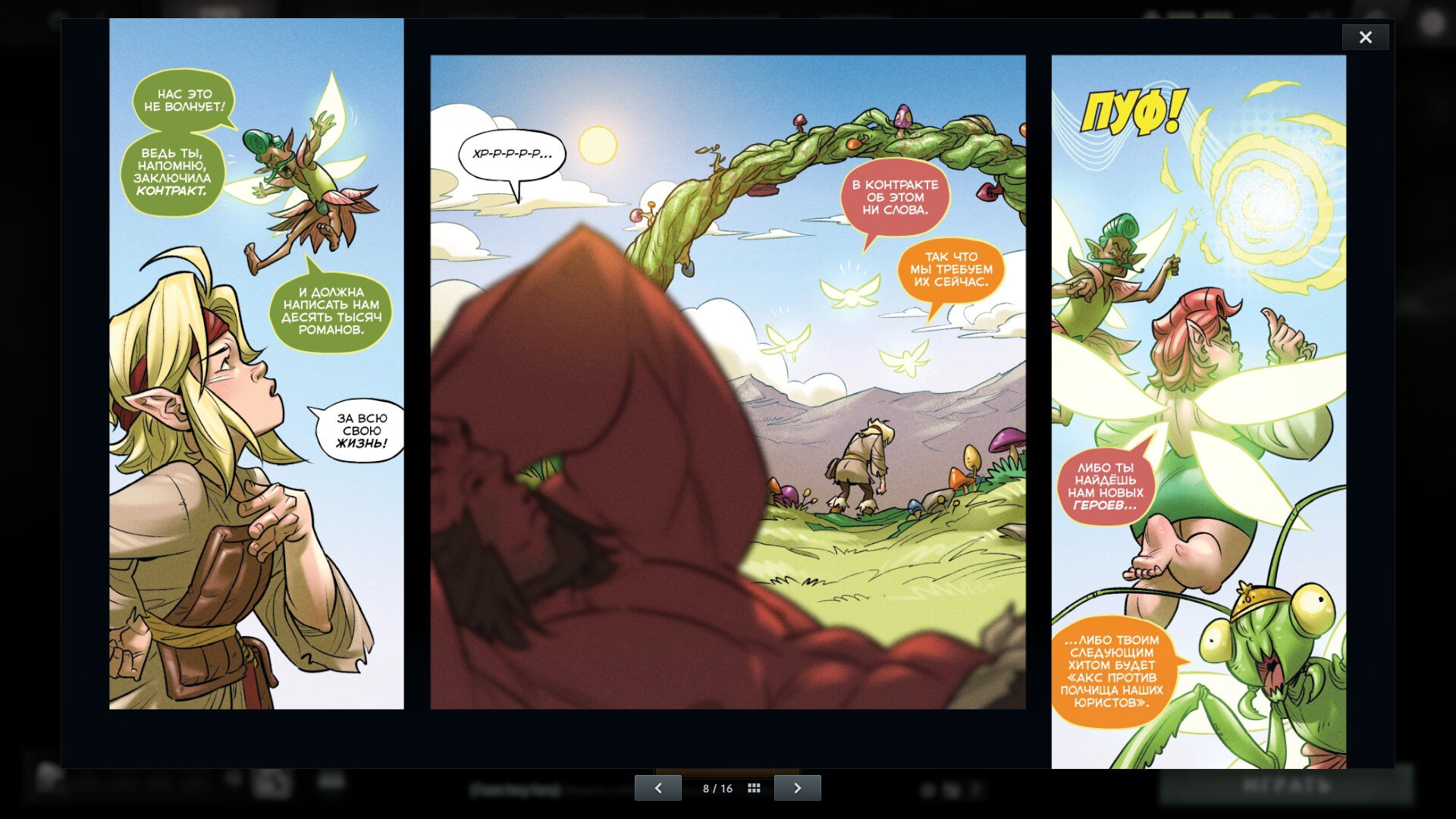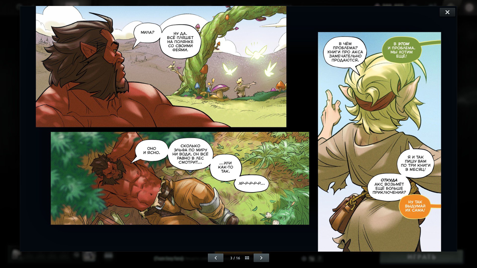 С началом кроссовера Доты и Monster Hunter в игре стал доступен новый комикс, посвященный вселенной Доты. Он рассказывает о совершенно новом персонаже – писательнице Миле Г., которая зарабатывает публикацией книг об Аксе и его приключениях.