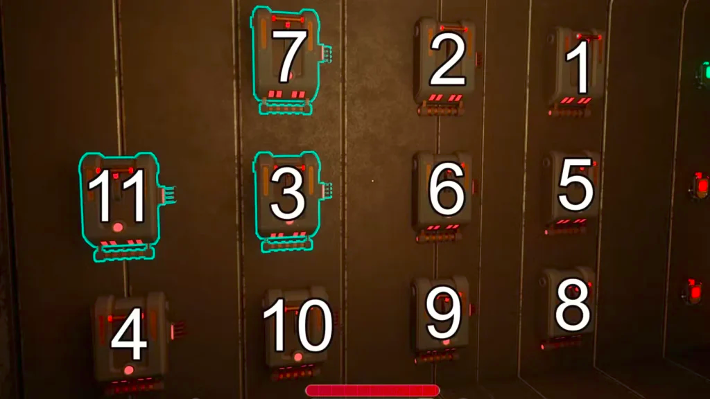 Следите за тремя лампами на двери – при правильной активации они постепенно загораются зеленым. Когда все три светятся, дверь откроется. Если ошиблись, просто сбросьте головоломку через панель управления и начните заново.