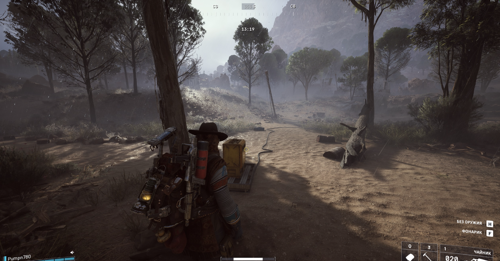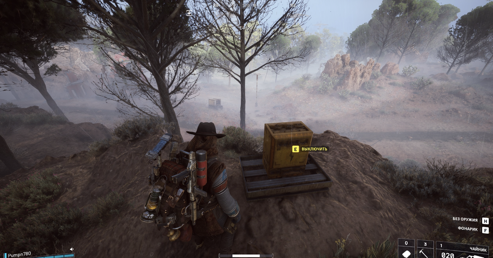 Первый переключатель. Расположен в лесу на пригорке. Подойдите к нему и начните взаимодействие.