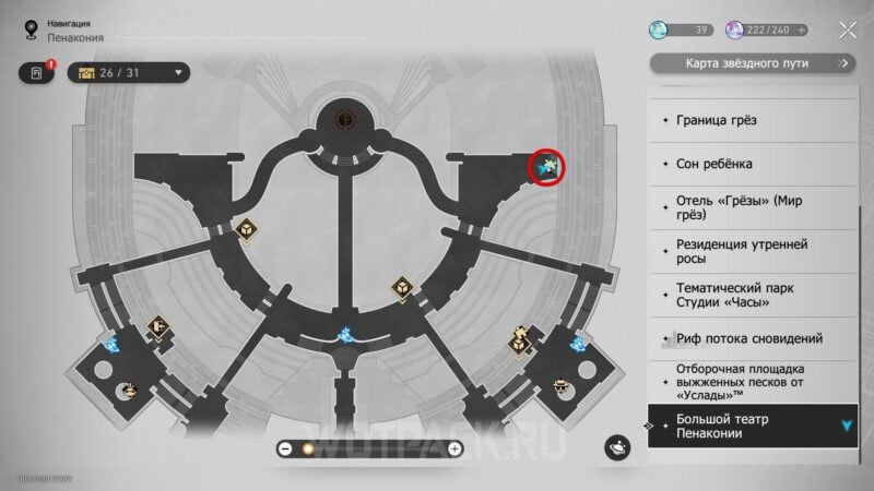 Помимо основных зон – театра, отеля, Академии, Лучезарного шпата, Отборочной площадки и Рифа Потока Сновидений – подобные головоломки встречаются и в других частях Пенаконии. Их принцип остается тем же: нужно правильно расставить кубы и зеркала, чтобы Часик, управляющий ходиками, собрал все шестеренки и починил часы. Решения аналогичны – двигайтесь по логике отражений и следите, чтобы путь оставался непрерывным.