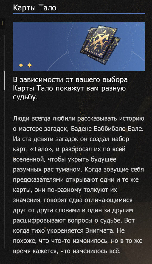 Во вселенной HSR про Загадочников мало что известно, кроме того, что они chaotic evil. Они разрушают суть языка и смысл слов, меняют местами слова в произведениях, искажают произведения до их полной нечитабельности. С ними, например, связана диковина «Карты Тало», которую можно получить при прохождении Виртуальной вселенной. Ее создал мастер загадок Баден Баббибало Бал.
