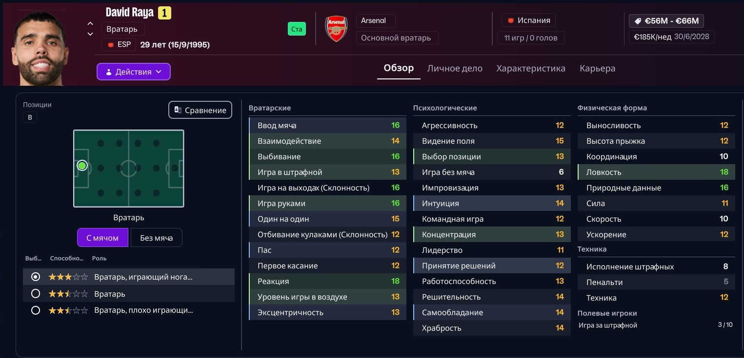 Невероятно недооцененным оказался Давид Райя. Испанец показал прекрасную стабильность в последних сезонах и закрыл вопросы об основном вратаре «Арсенала», которые витали в воздухе после его перехода из «Брентфорда». Давид – один из лучших киперов прямо сейчас, но только не в менеджере. Ресерчеры посмеялись над испанцем и выкинули Райю во вторую десятку вратарей, а выше него поставили Диогу Кошту и Георгия Мамардашвили.
