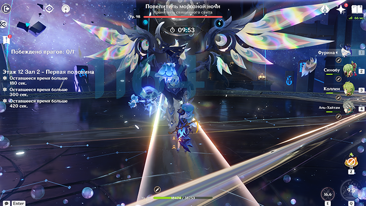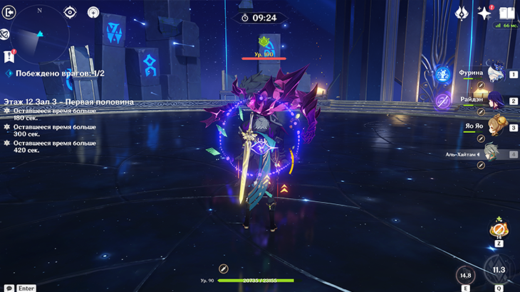 Тут вам помогут либо персонажи региона (Лаума, Айно, Нефер и другие), либо гипер-инвестиции в другие команды (созвездия на легендарок, сигнатурные оружия и их пробуждения, отличные артефакты и так далее), потому что зал не представляет из себя ничего интереснее банального ДПС-чека.