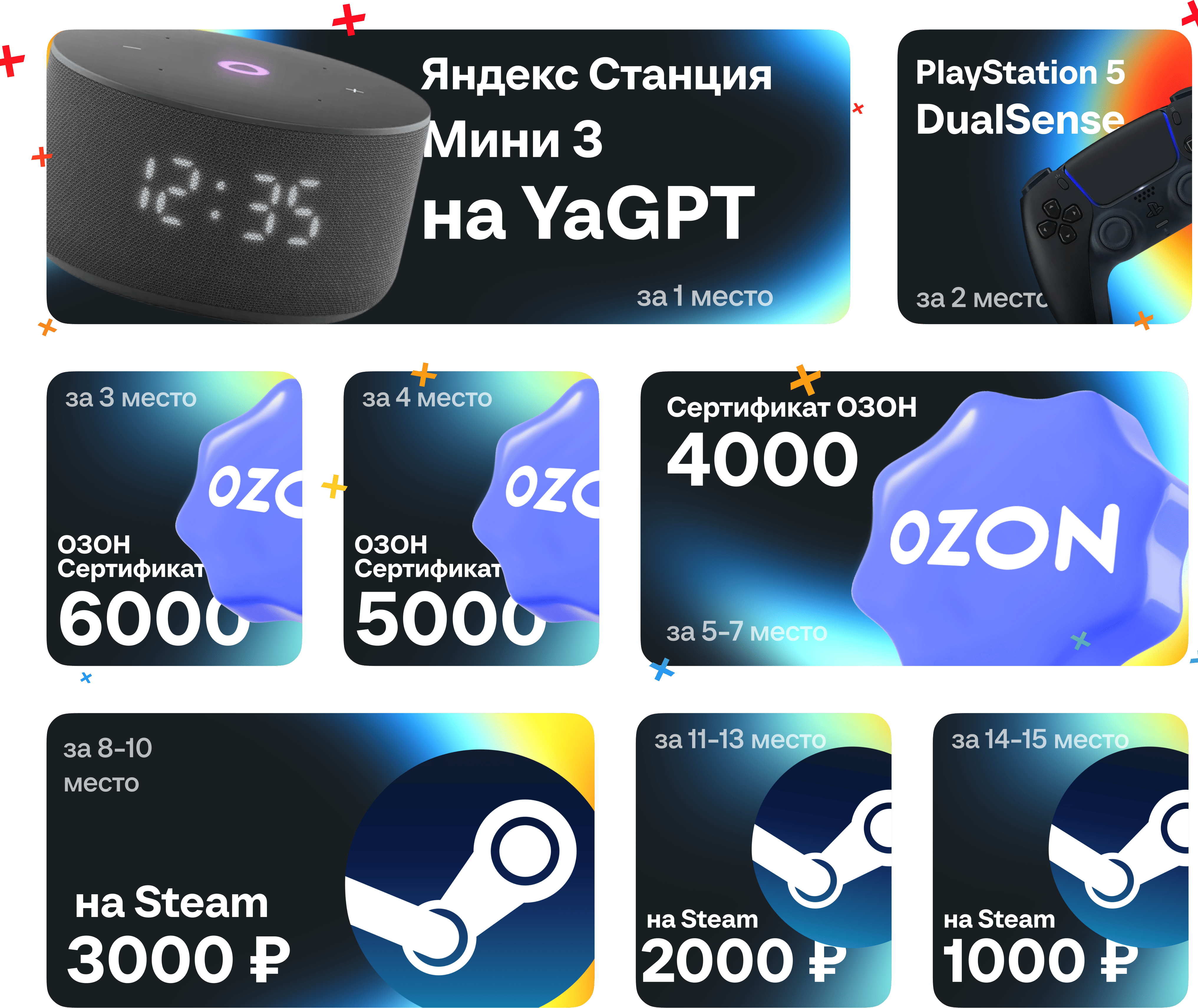 5-7-е место: сертификат Ozon на 4000 рублей;