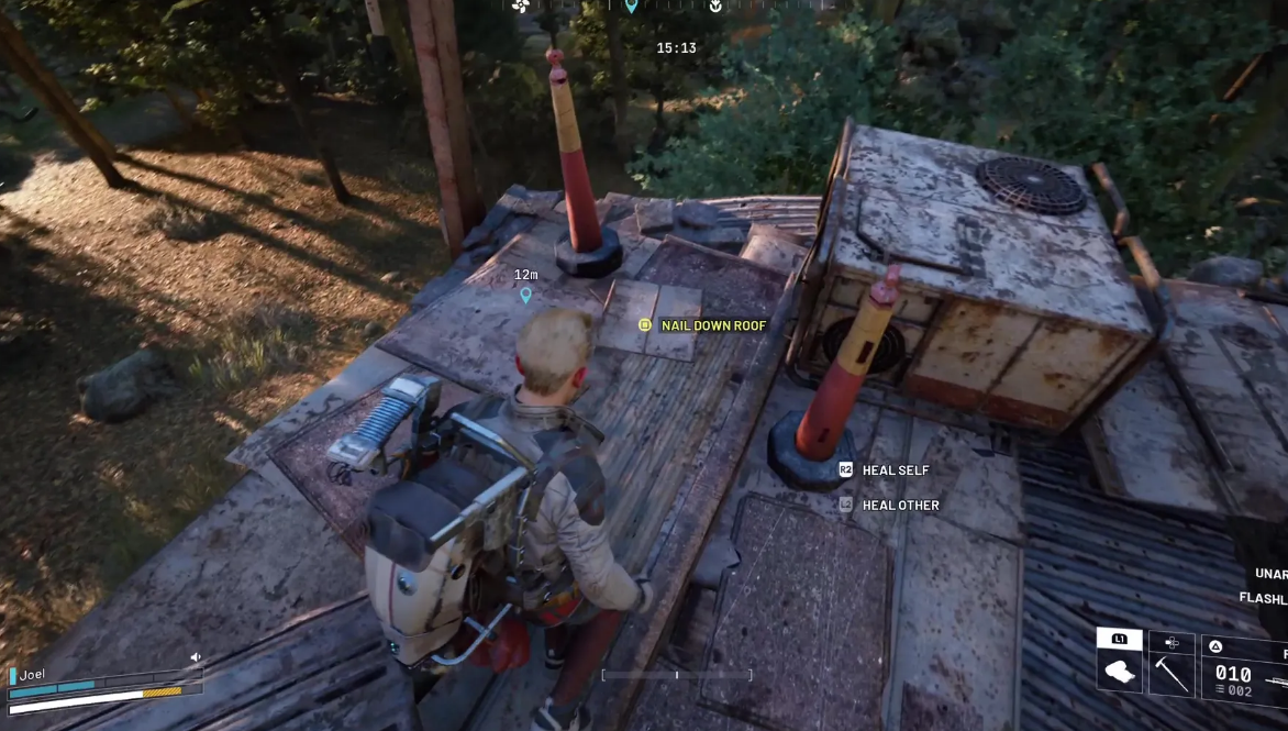 - Укрепление крыши: Затем вам нужно подняться наверх (в этом помогут ящики или строительные леса) и, зажав клавишу взаимодействия, надежно закрепить свисающие кровельные панели.