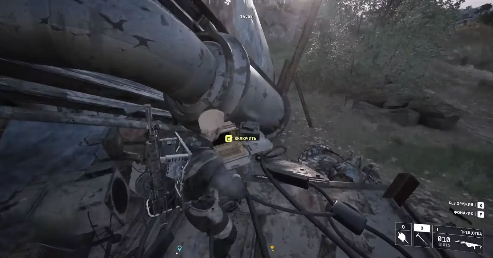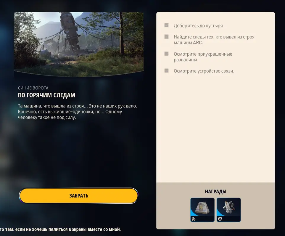 На Пустыре находится корпус разрушенного ARC – около него лежит шарнир, который игрок должен осмотреть. Если всплывет подсказка «Осмотреть объект» – значит, вы нашли нужный шарнир. Нажмите клавишу действия, чтобы запустить процесс осмотра – тогда эта часть квеста будет выполнена.
