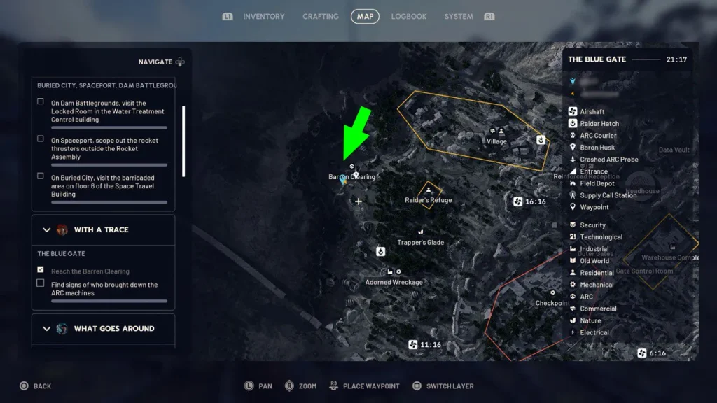 Пустырь находится в южной части локации Синие ворота. На пути к Пустырю вам встретятся патрули ARC – нужно прорваться через них или обойти. Желателен второй вариант, хотя вам лучше взять хорошее оружие и снаряжение, чтобы быстро отбиться. В идеале лучше спрятаться при виде патрулей, чтобы не нарваться на неприятности.