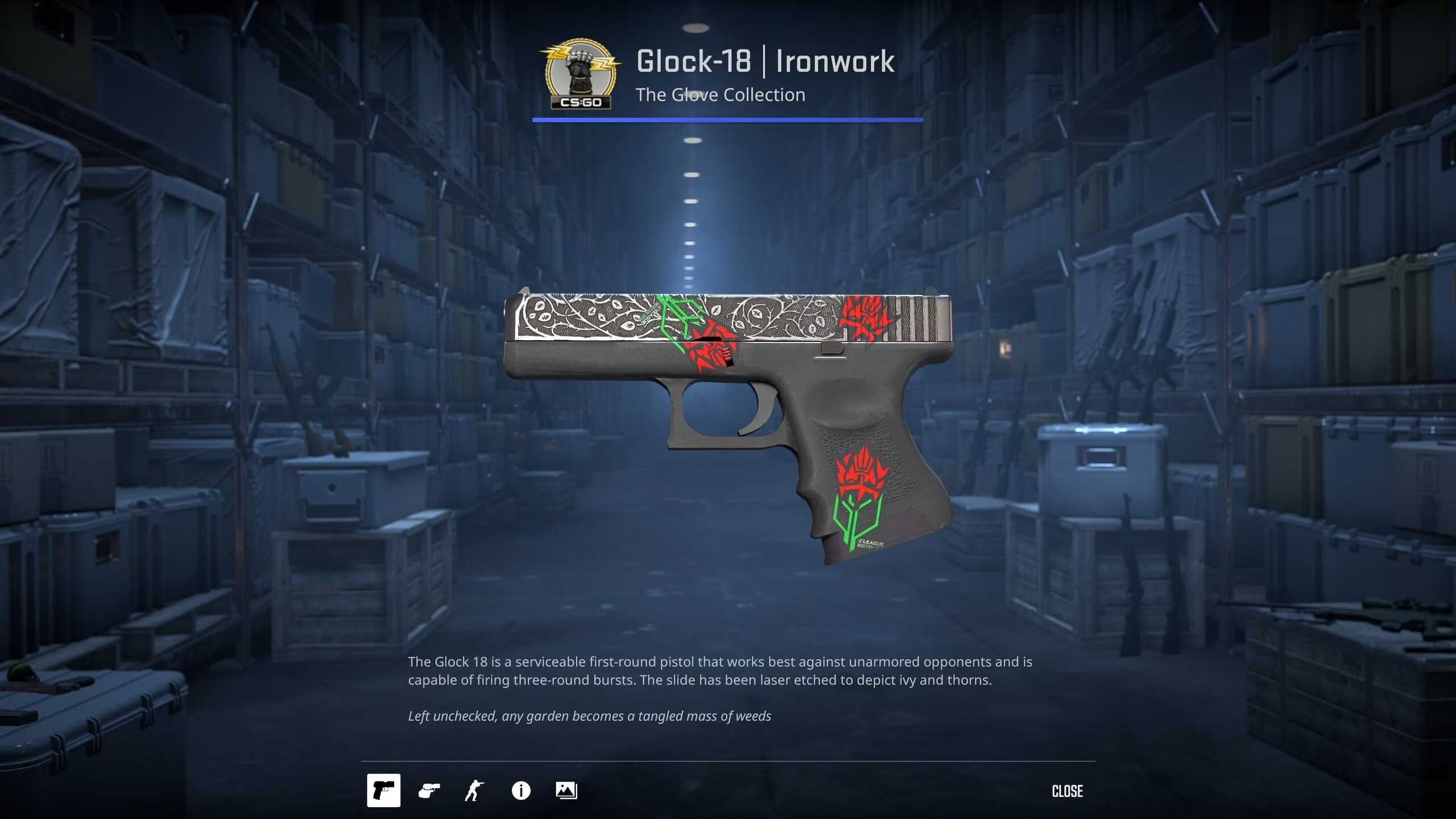 Чаще всего этот крафт размещают на скине Glock-18 | Литье, так как на нем есть стебли и листики.