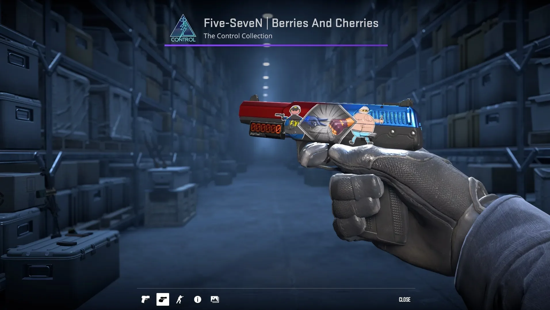 Еще один креативный вариант – крафт на скине Five-SeveN | Мигалка. На этом полотне разворачивается целая битва при помощи трех стикеров.