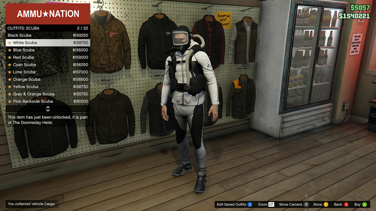 В GTA Online же все иначе. В этом режиме можно купить полноценный костюм дайвера в магазинах одежды или в Ammu-Nation. Стоимость зависит от цвета и составляет от $155 500 до $163 000. Если у вас есть подлодка Kosatka, костюм можно получить бесплатно, что делает ее отличным выбором для любителей подводного исследования. Сам по себе костюм не заменяет дыхательные аппараты, но делает исследование глубин более атмосферным и визуально реалистичным.