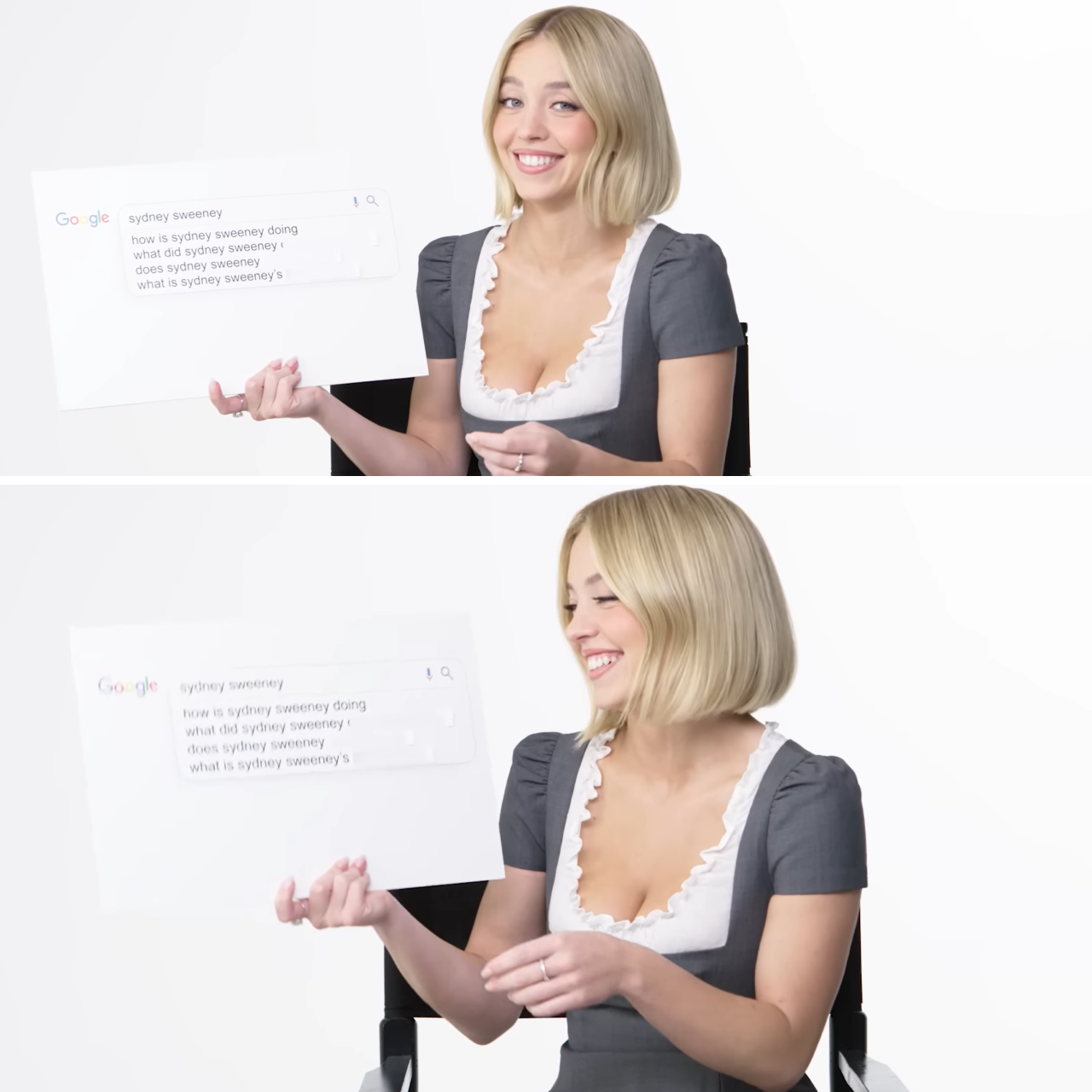 Сидни Суини появилась на ютуб-канале WIRED, чтобы ответить на самые частые вопросы о себе из поисковика Google. Ранее в популярном формате приняли участие Киану Ривз, Сильвестр Сталлоне, Джон Сина, Ана де Армас, Джеки Чан, Чарли Ханнэм, Марк Уолберг и другие звезды Голливуда.