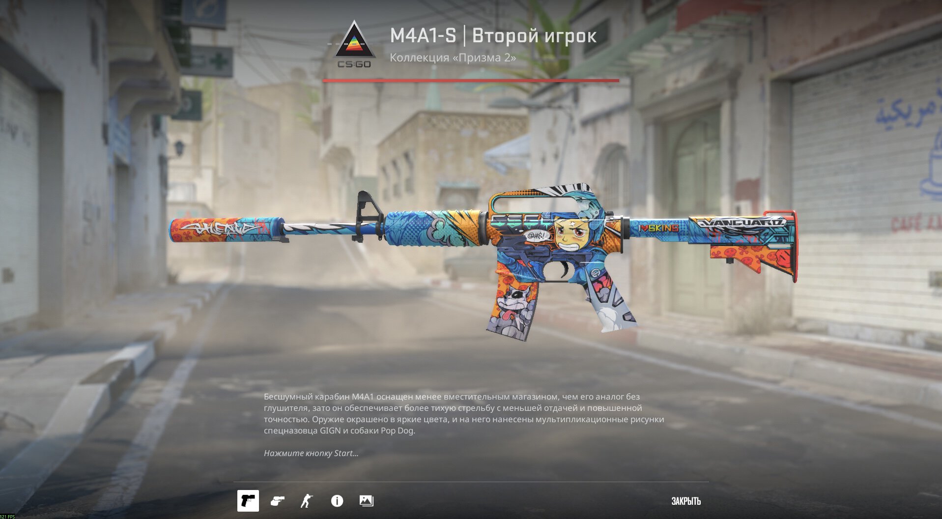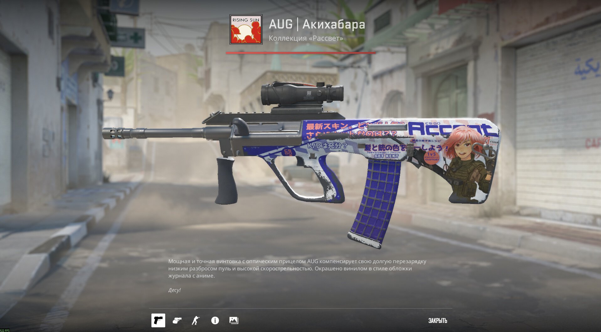 Популярный и при этом недорогой скин. На нем есть не только милая аниме-девочка, но еще и надписи на японском. Все они отсылают к КС 2 – например, «Раш Б» и «Counter-Strike».