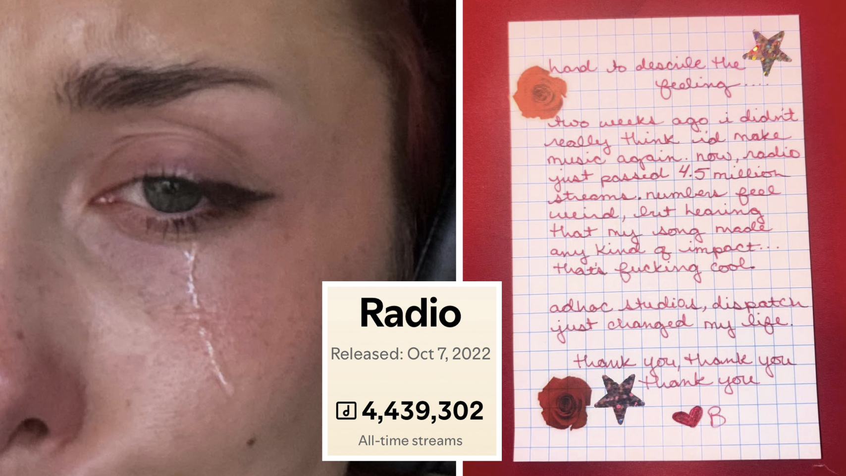 «Еще две недели назад я и не думала, что снова буду заниматься музыкой. Сейчас число прослушиваний Radio преодолело отметку в 4,5 миллионов (уже 6 млн). Необычно видеть такие цифры. Читать, что моя песня оказала хоть какое-то влияние… это чертовски круто». Также Bershy отметила, что Dispatch изменила ее жизнь.