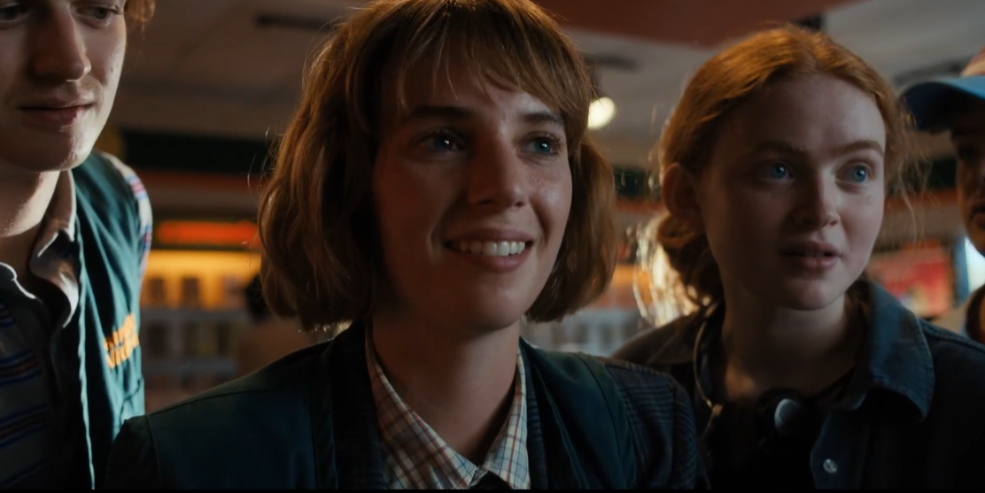 Джойс и Мюррей захватывают диспетчерскую. Джойс открывает дверь арены, позволяя Хопперу и Антонову выскользнуть наружу в последний момент. Хоппер отбивает демогоргона горящим копьем, дверь захлопывается и отсекает существу руку. Хоппер и Джойс смотрят друг на друга через стекло. Он впервые за долгое время улыбается.